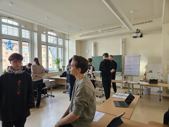 Um die individuellen Interessen der zukünftigen Abiturienten zu berücksichtigen, setzten die Organisatoren auf ein offenes, persönliches Konzept. Die Agricolaner teilten sich in mehrere thematische Gruppen auf, die in verschiedenen Räumen in und um die Aula untergebracht waren. So konnten die Jugendlichen je nach Interesse von Raum zu Raum wechseln und gezielt Fragen stellen. Eine Gruppe informierte über das Lehramtsstudium und gab Einblicke in Studienalltag, Praxisphasen und den späteren Lehrerberuf. Ein weiterer Raum widmete sich dem Medizinstudium sowie verwandten Bereichen wie Pharmazie und anderen Gesundheitsberufen – inklusive Tipps zu Zulassungsvoraussetzungen und Studieninhalten.