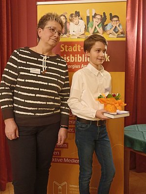Nach der abschließenden Beratung standen die Platzierungen fest. Bei der Siegerehrung erhielten alle Teilnehmer kleine Geschenke und Buchpreise – ein herzliches Dankeschön an die Bahnhofsbuchhandlung Otto, die diese großzügig gesponsert hat. Ein besonderer Glückwunsch geht an Konrad Vogel, der unsere Schule in der nächsten Wettbewerbsrunde am 30.01.2026 in der Stadtbibliothek Glauchau auf Landkreisebene vertreten hat. Er konnte dort ebenfalls als bester von 12 Vorlesern überzeugen und sich für den Bezirksausscheid im Frühjahr qualifizieren. Wir wünschen weiterhin viel Erfolg sowie Freude beim Lesen!